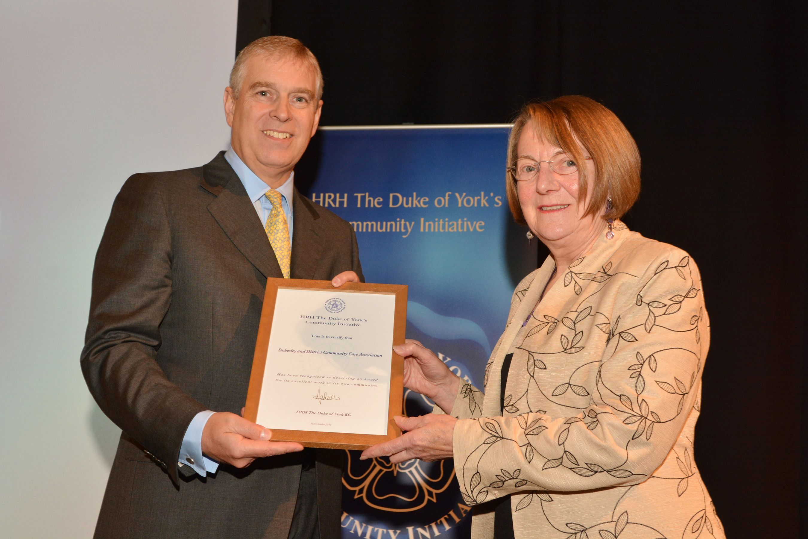 The attached picture shows: Dorothy Blakey receiving their 2014 award from HRH THE DUKE OF YORK.